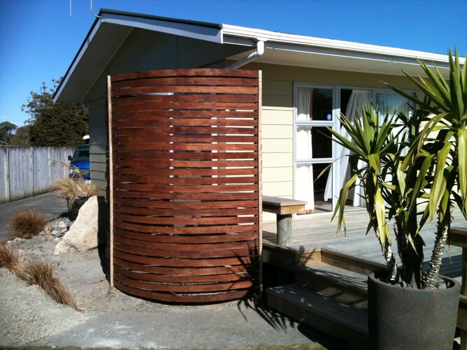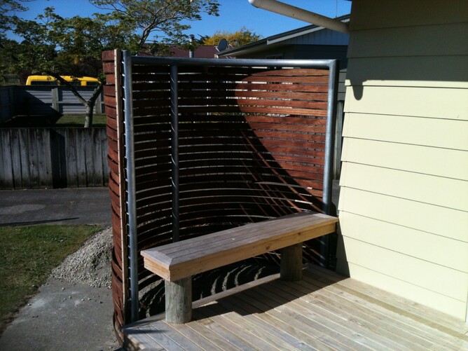 Custom curved privacy screen we made to enhance an entertainment area. Contact us to customise your home & garden.
