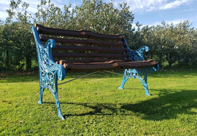 Garden bench we put together using up-cycled parts, giving it another lease of life.