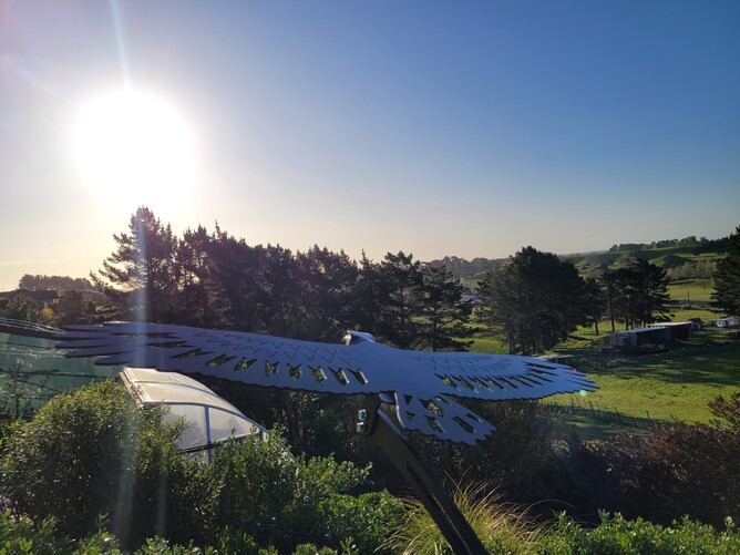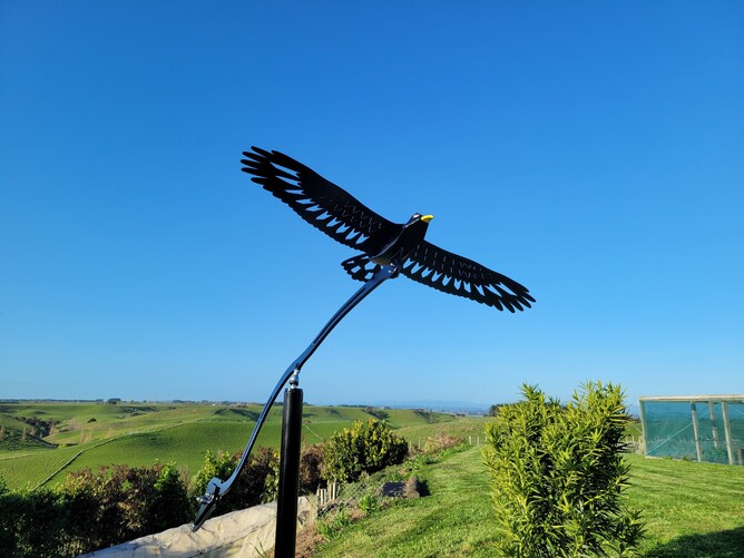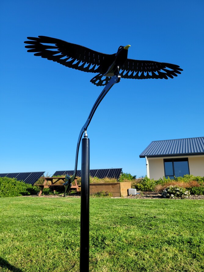 Soaring into the world of kinetic sculptures. This beautiful balanced bird is designed to glide gracefully, in all directions, moving with the wind. This bird moves freely in the forever changing winds, bringing this view to life. If you have a dream design on your mind, we can bring it to life!
